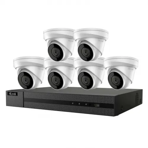 The Hikvision HiLook IK-6284TH-MH/P 4MP PoE IP Kit offers a cost-effective and reliable surveillance solution for homes and small businesses. This all-in-one package includes six 4MP outdoor IR turret cameras and an 8-channel PoE NVR, providing high-definition video recording and playback.