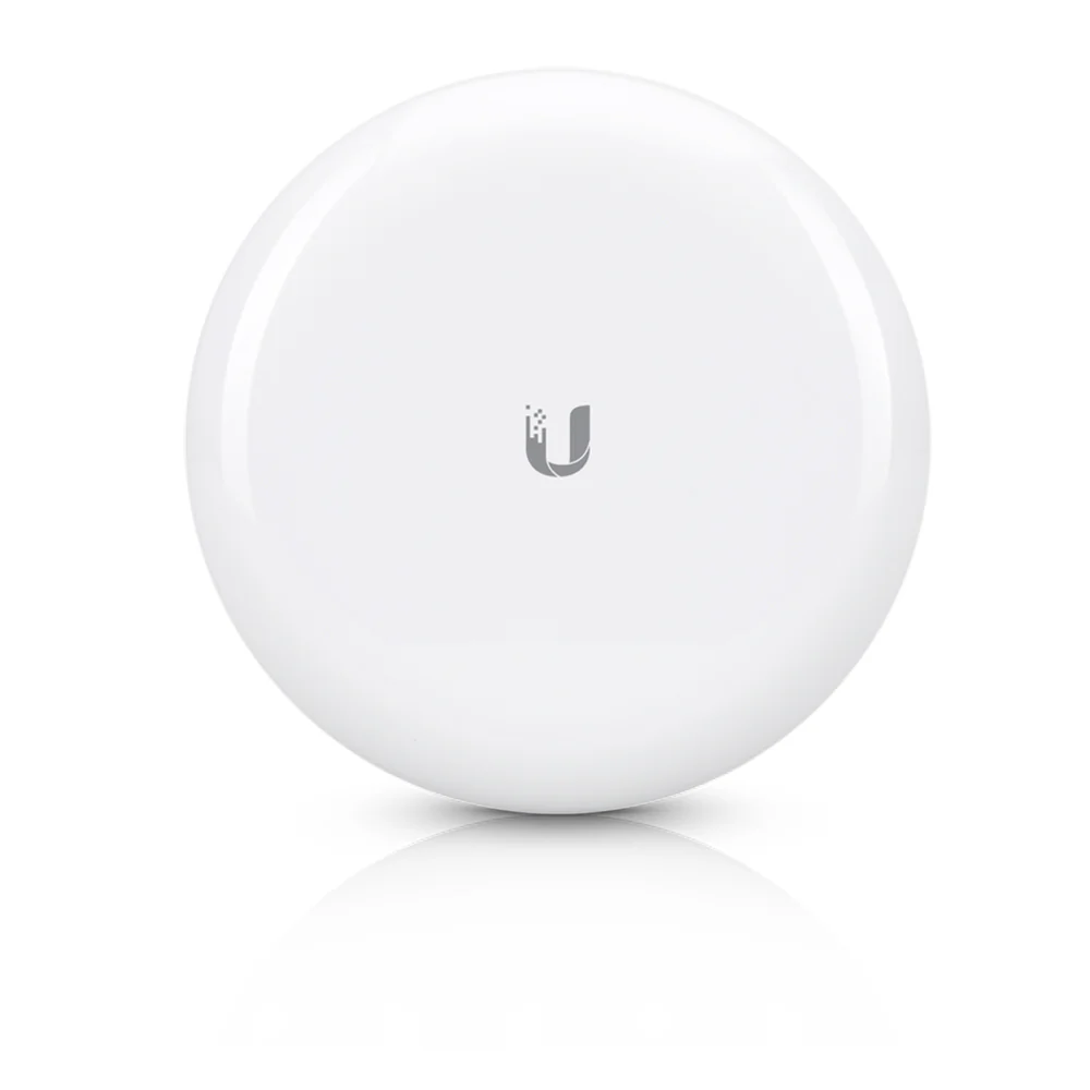 The Ubiquiti GigaBeam is a compact, high-performance wireless bridge designed for point-to-point deployments requiring gigabit throughput. Operating primarily on the 60GHz frequency band, it delivers low-interference, high-capacity connections, with a 5GHz radio providing backup redundancy. The device supports up to 1+ Gbps throughput, making it ideal for connecting buildings or extending networks over short distances. Its sleek design includes a 17.2 dBi gain antenna at 60GHz and 10 dBi at 5GHz, ensuring reliable performance. The GigaBeam is powered via a 24V passive PoE adapter and includes a Gigabit Ethernet port for seamless integration. Management is simplified through the UISP application, offering tools like antenna alignment and speed testing.