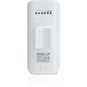The Ubiquiti NanoStation LocoM5 is a high-performance, outdoor wireless CPE designed for long-range connectivity.Operating on the 5 GHz frequency band, it features a 13 dBi dual-polarity antenna and 2×2 MIMO technology, providing real outdoor throughput of over 150 Mbps and a range of up to 15 km. Its compact form factor and robust design make it suitable for various applications, including bridging networks between buildings or extending wireless coverage in rural areas. The device is powered by a 24V, 0.5A PoE adapter and includes a 10/100 Ethernet port for seamless integration into existing networks.