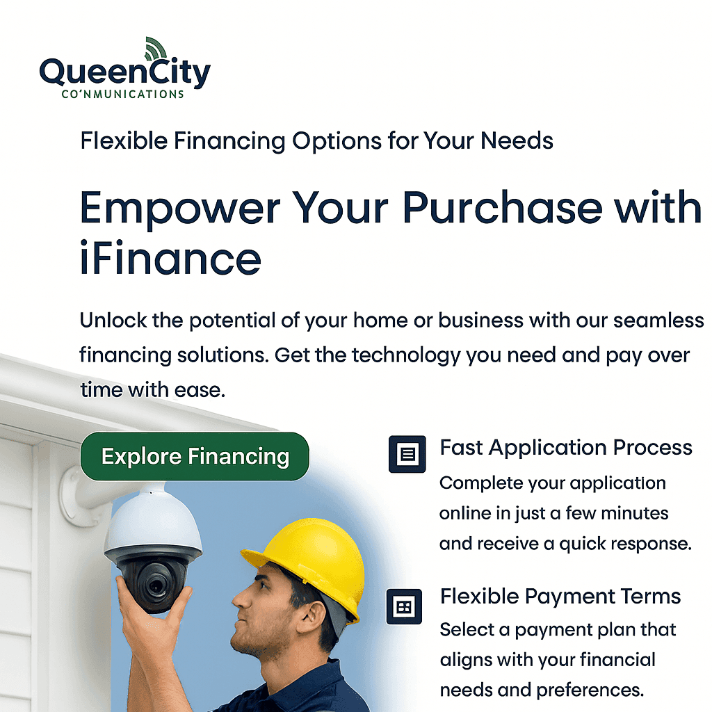 At Queen City Communications, we understand the importance of staying connected and secure. That’s why we’ve partnered with iFinance to offer you a straightforward way to finance your equipment purchases. Whether you need telecommunications, security, or internet solutions, our financing options allow you to spread the cost over time, making it easier to manage your budget.